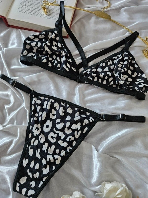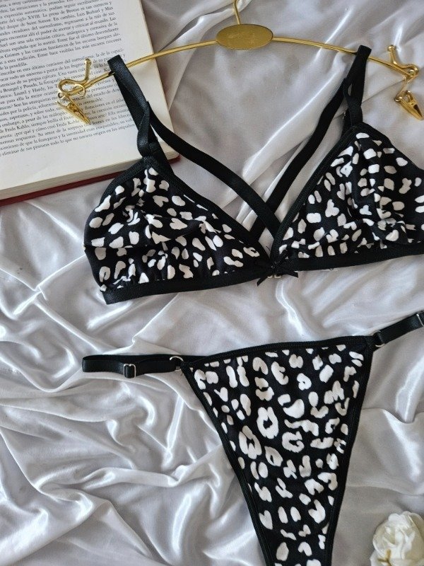 CONJUNTO DE ALGODÓN DOBLE TIRA (A37 A) NEGRO CON BLANCO