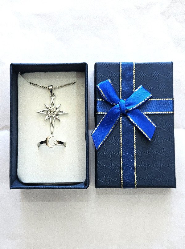 Estrella Sirio y Luna con Strass Plateada de Acero