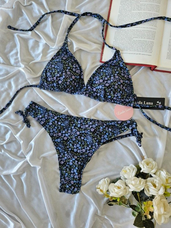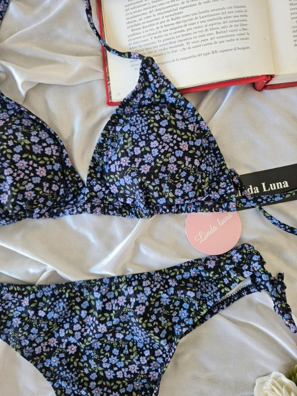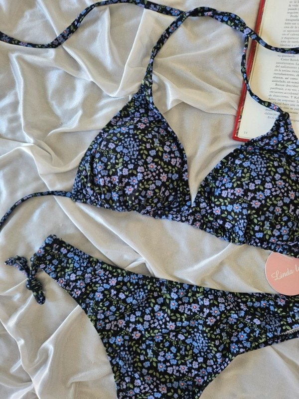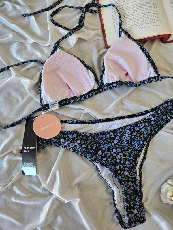 BIKINI FLORES NEGRAS Y LILAS (A51)