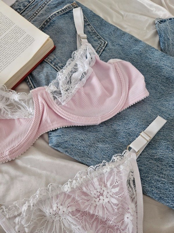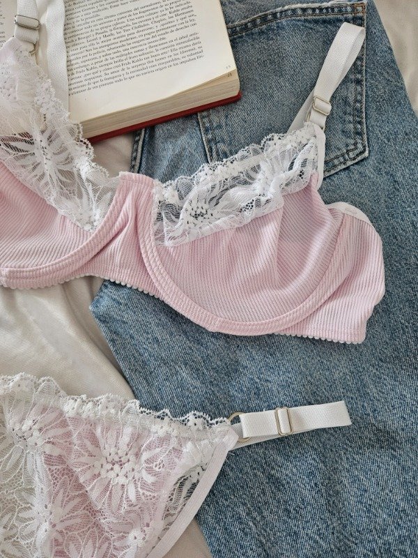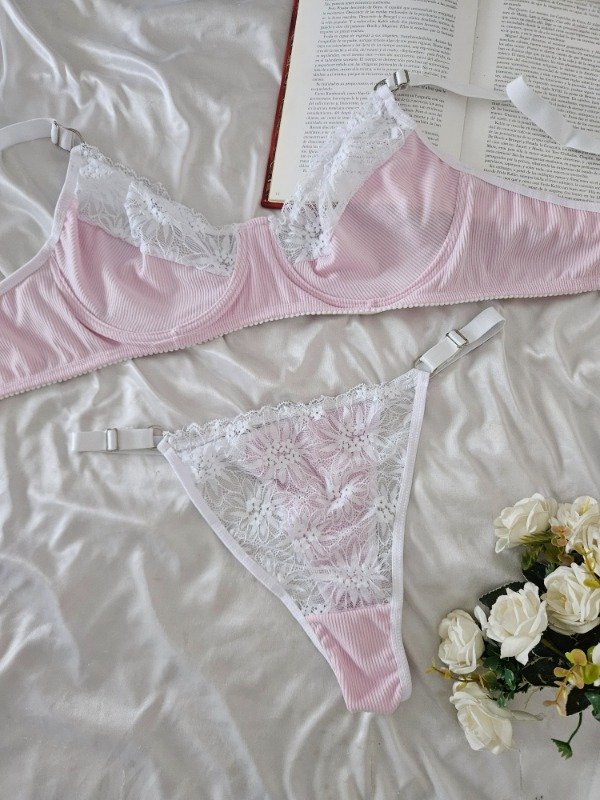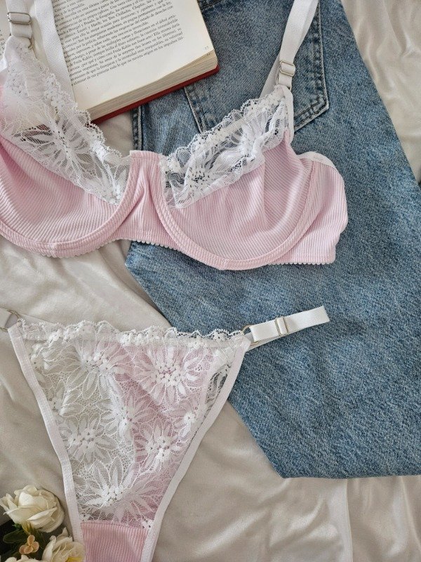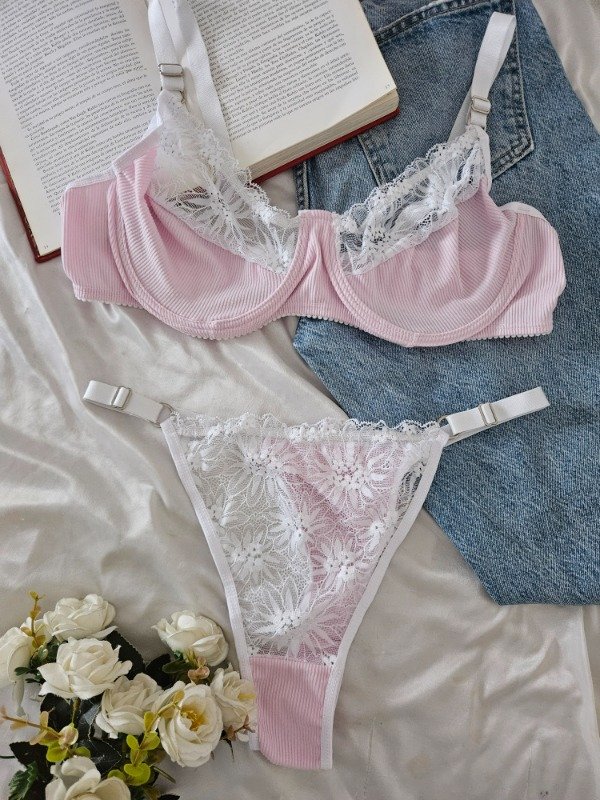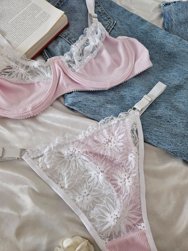 CONJUNTO DE ARO DE MORLEY Y ENCAJE (A26 A) ROSA