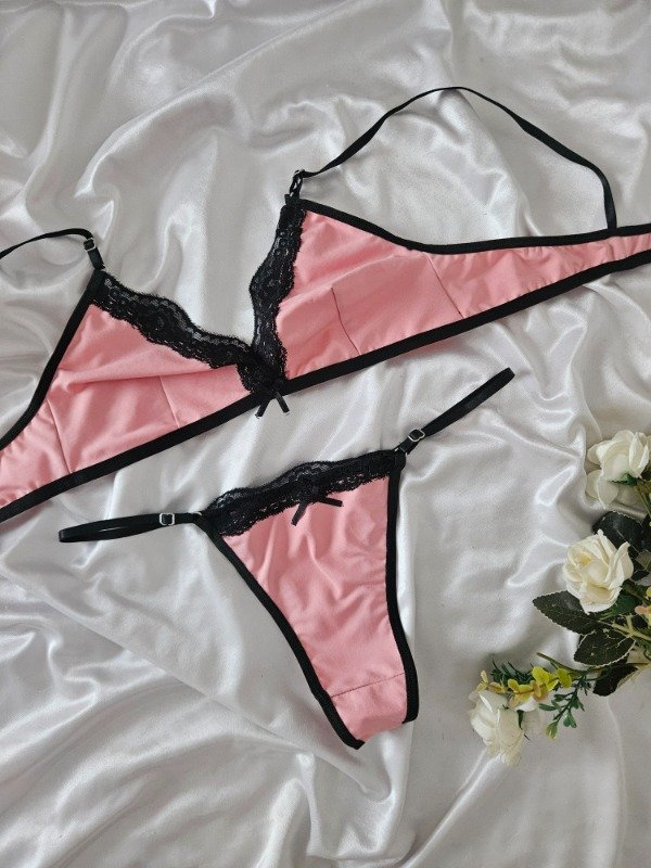CONJUNTO LYCRA CON PUNTILLA ROSA (A09 A)