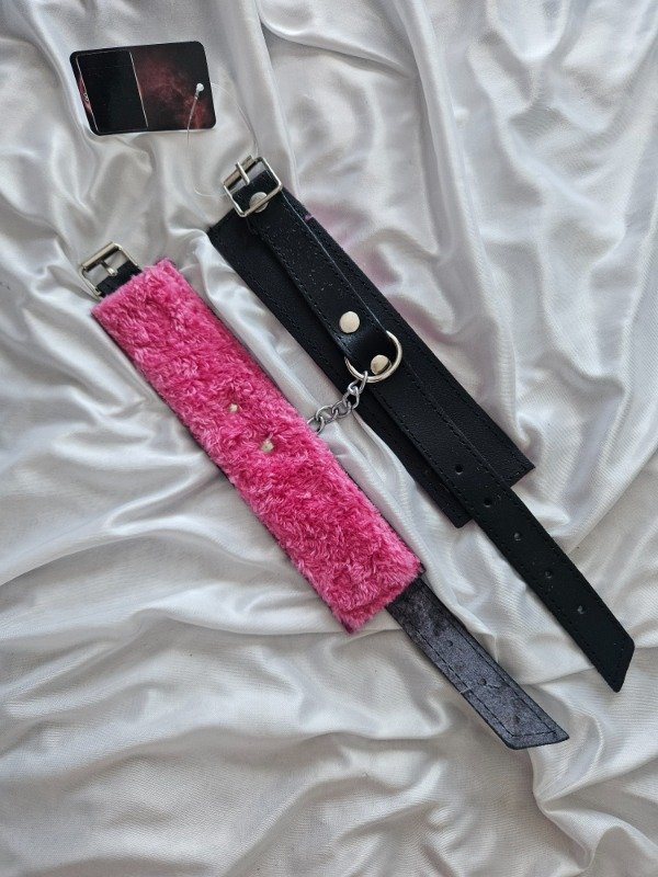 ESPOSAS DE CUERO CON MOSQUETON Y PELUCHE - CON PELUCHE ROSA